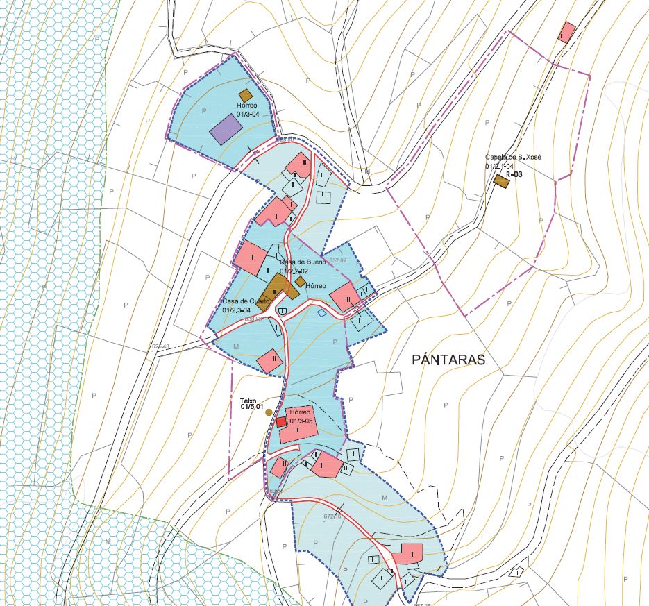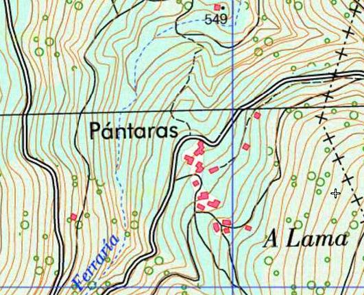 Continuamos pola estrada CP-1902 e pasamos no Km 5,100 por diante da única vivenda da Ferraría para seguir baixando e entrar en Pántaras no Km 06,00.