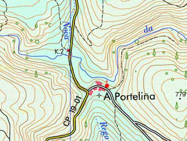 Accesos: Lu-530 hasta el Km. 55,200 onde colleremos a estrada CP-1901 dirección Navia de Suarna pola que percorreremos uns 2,3 Km. para chegar a Porteliña.