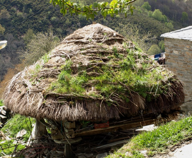 Horreos con teito de palla.