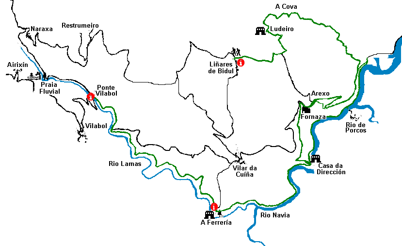 da ribeira do Río Lamas, ata chegar á Ponte de Vilabol, onde remata a nosa